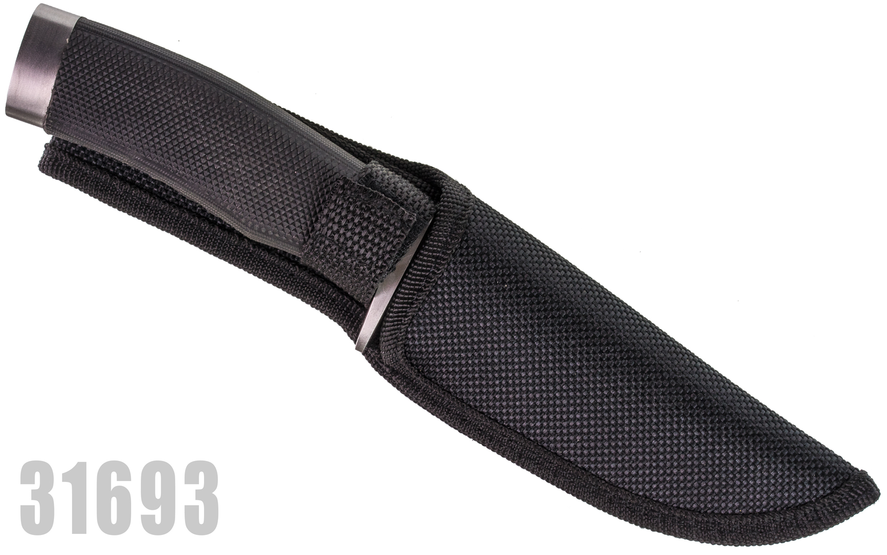 Fodero in nylon con chiusura a nastro a strappo e passante per cinta Impugnatura in ABS Lama in acciaio inox Lunghezza Lama: 115 mm Spessore Lama: 4 mm Lunghezza Totale: 230 mm