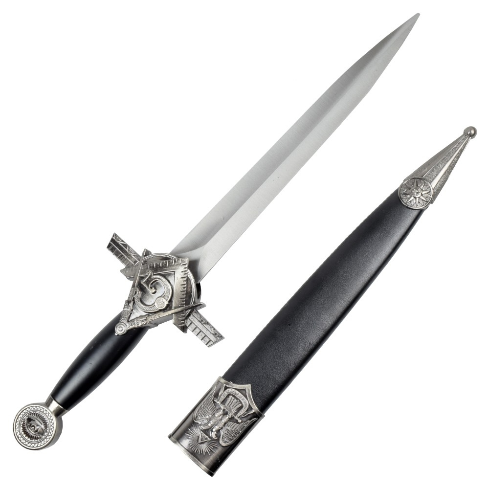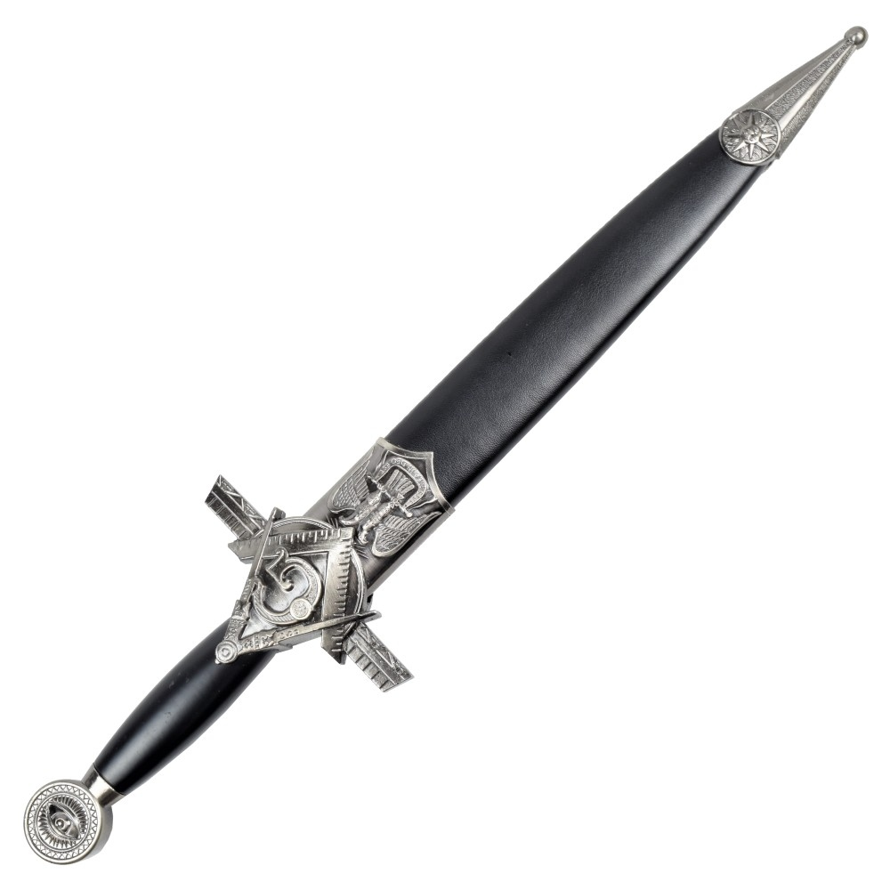 Pugnale decorativo a tema massonico, realizzato esclusivamente per scopi ornamentali, collezionistici o scenografici. Non destinato all’uso pratico.