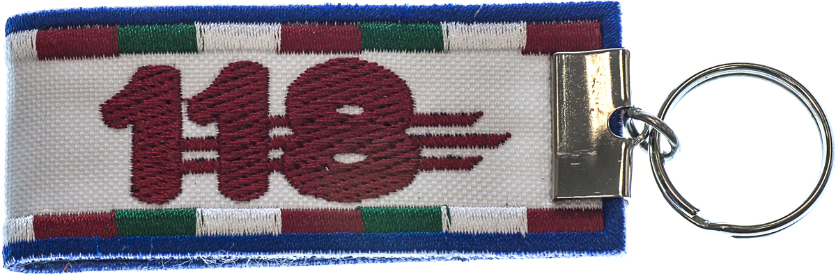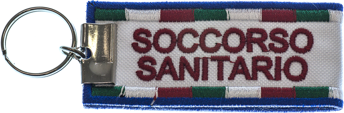 A nastro di cordura ricamato Attacco con anello in metallo lucido Diametro anello 2,8 cm Lunghezza totale 12 cm Altezza nastro 3,2 cm Peso 15 grammi