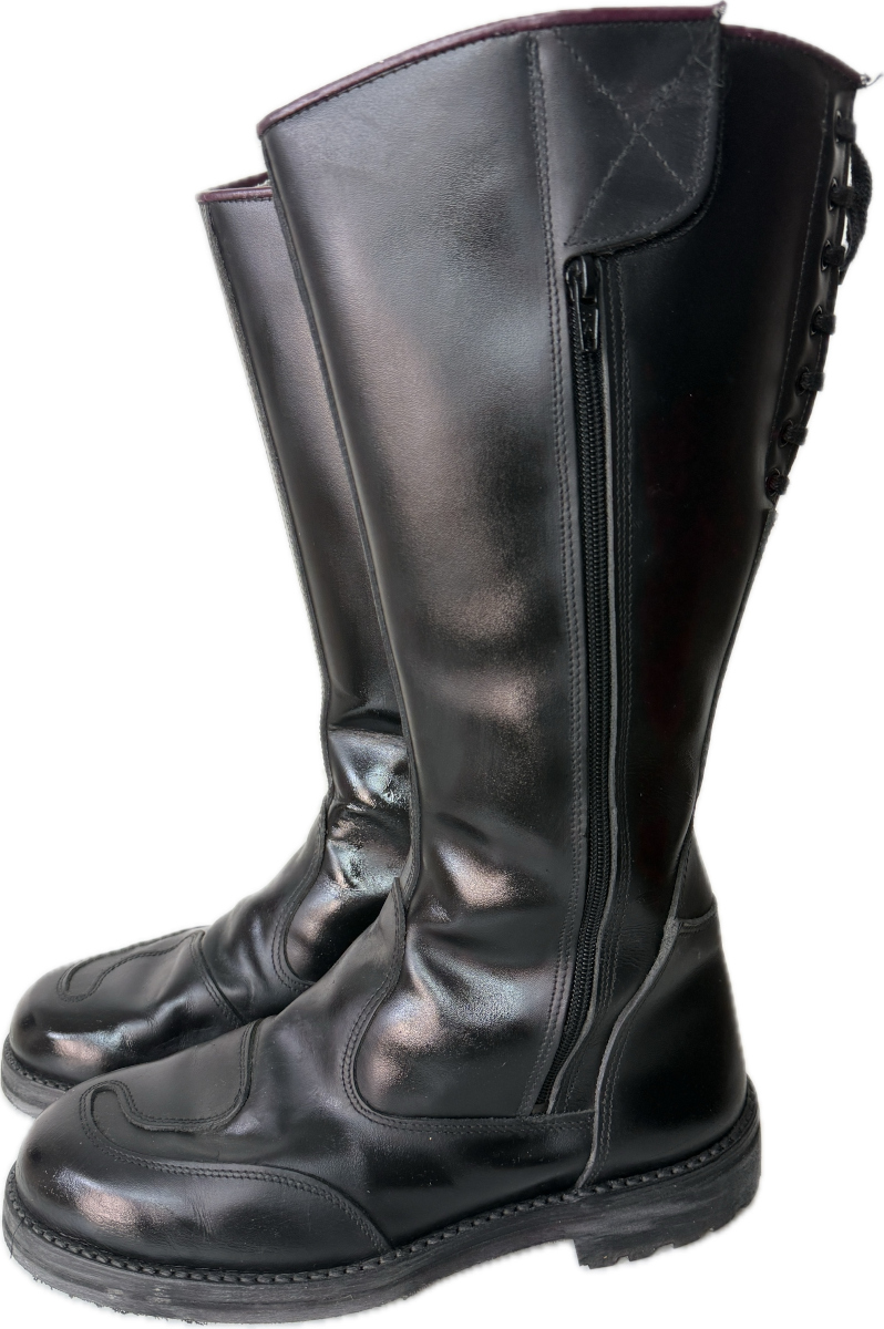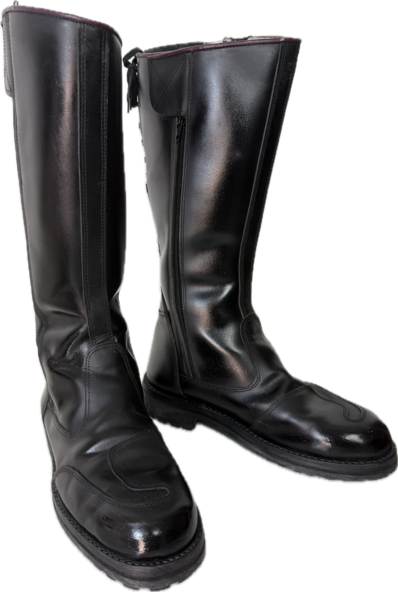 Stivali originali per servizi motomontati invernali della Polizia Italiana, produzione anni 2000. Articolo nuovo, realizzato in Italia con materiali di alta qualità, progettato per garantire robustezza, protezione e comfort durante il servizio operativo.