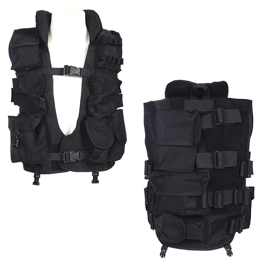 Gilet tattico modello SWAT, ideale per softair, addestramento, rievocazione o utilizzo outdoor. Prodotto nuovo, realizzato in resistente cordura nera.