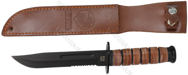 produzione industriale lama acciaio 440 trattamento lama teflonata impugnatura ad anelli di cuoio trattati lunghezza lama: 180 mm spessore lama: 4 mm lunghezza totale 305 mm bilanciatura arretrata a 1cm peso 284gr fodero in cuoio marrone cucito e dotato di passante per cintura